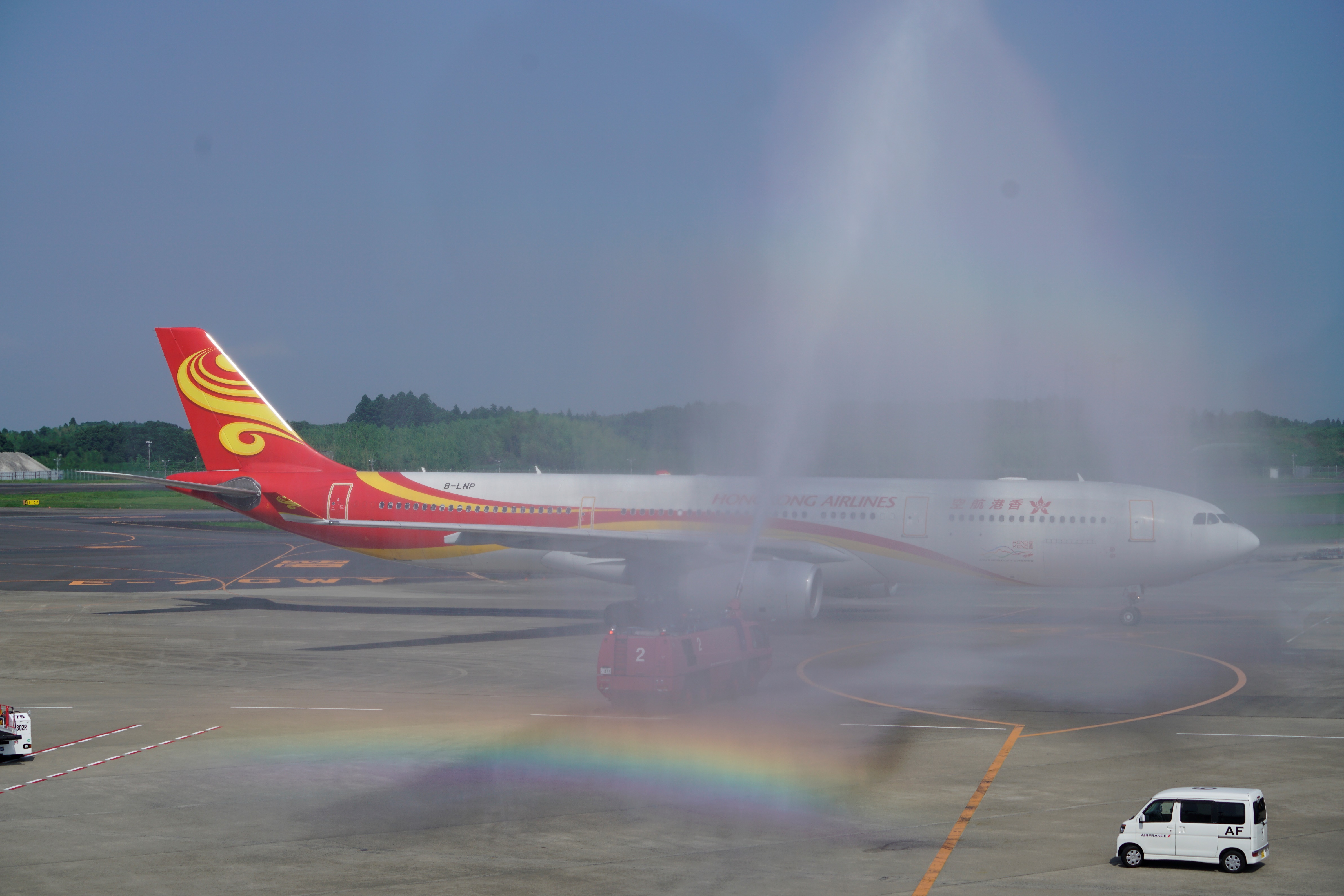 為了隆重其事,香港航空一眾要員特別乘搭首班航機HX608由香港飛抵東京,與所有乘客共同見證這個重要時刻。航班於當地時間7月1日下午抵達東京成田機場後,全體乘客及機組人員均受到成田機場及香港航空代表的熱烈歡迎,成田機場更按照傳統安排水砲歡迎儀式。