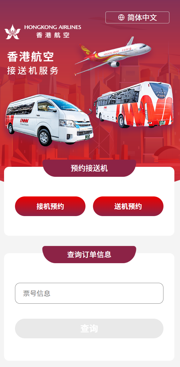非香港航空自营渠道购买的机票,可通过香港航空官网、香港国际机场值机柜台、贵宾室、登机闸口或指定二维码预约接/送机服务
