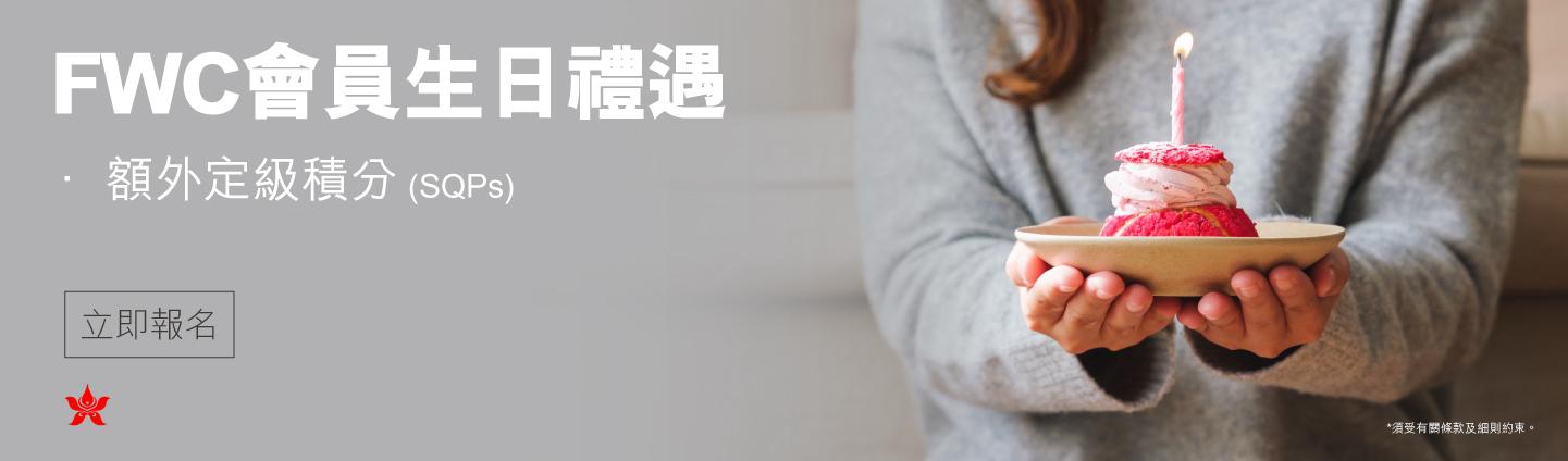 金鵬俱樂部(FWC)會員在生日月報名參加並乘搭合資格航班,可根據以下表格賺取額外的定級積分(SQPs):